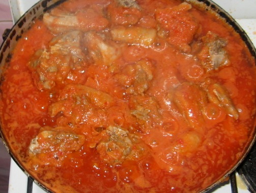 - Washed goat meat is put in a pot with some salt, seasoning, ground pepper, chopped onion and a little water, covered and allowed to boil.